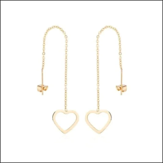 Hartvormige Stalen doortrek Oorbellen met kettinkje