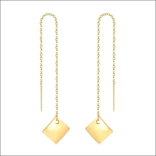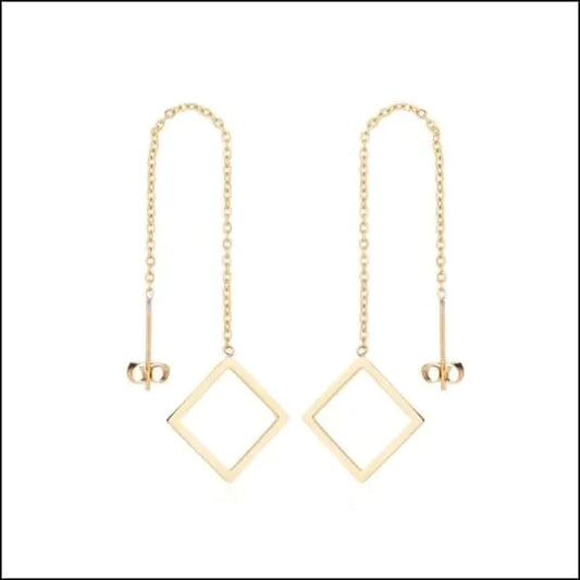 Stalen Ruit Oorbellen met ketting-Doortrekoorbellen
