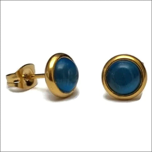 Goudkleurige oorbellen met aqua blauw zirkonia 6mm