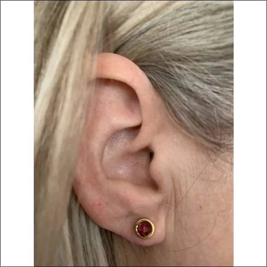 Goudkleurige oorbellen rood 6mm – Staal