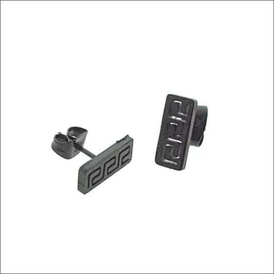 Zwarte Stalen Bar Oorbellen - Grieks Motief