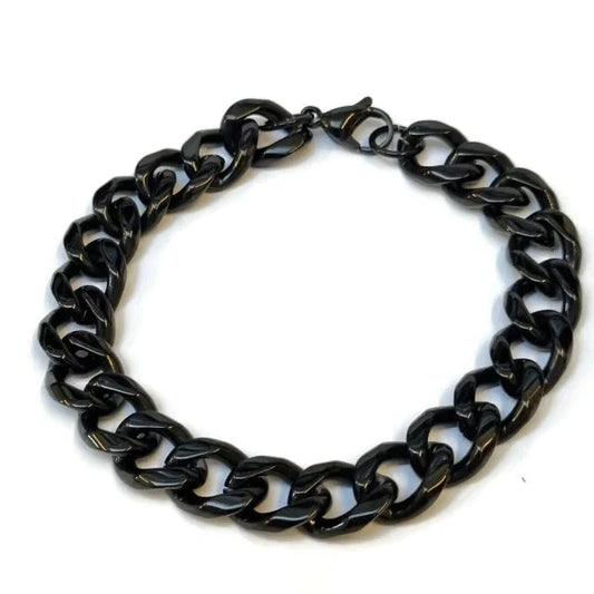 Zwarte Stalen Gourmetarmband 12mm 21cm RVS