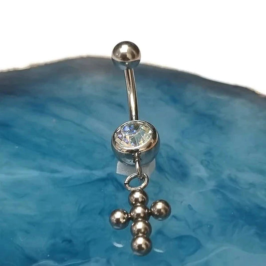 Roze Zirkonia Stalen Navelpiercing met Kruisje