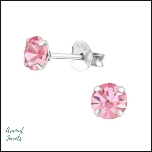 Zilveren Kinder Oorringen - Vierkante Kristal - 10mm