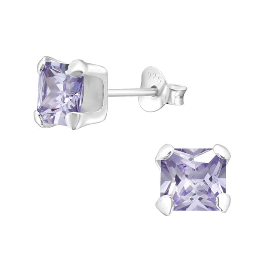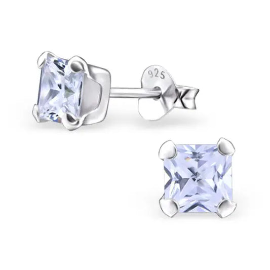 Zilveren Vierkante Zirkonia Oorbellen - 6mm