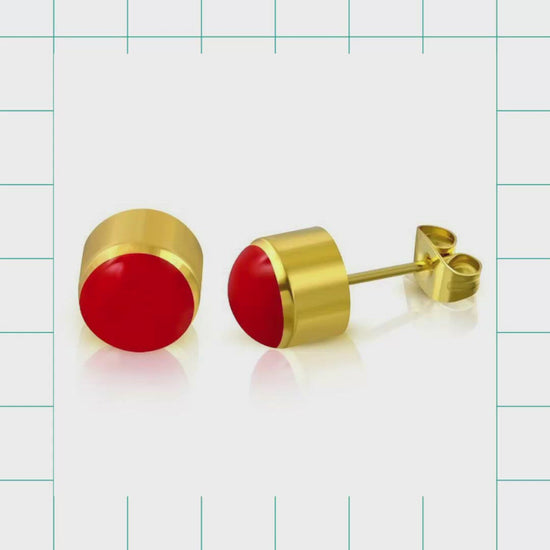 Stijlvolle Stalen Goudkleurige Oorknopjes met Rood Emaille 4mm