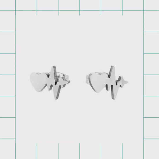 RVS Hartslag Oorbellen Heartbeat 11x5mm - ECG Oorstekers