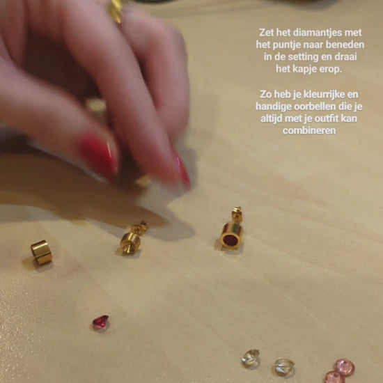 Het verwisselen van de steentjes is eenvoudig en snel. Draai simpelweg het steentje los, kies een nieuwe kleur, en bevestig deze weer in de oorbel. Deze gemakkelijk te verwisselen zirkonia maakt het mogelijk om moeiteloos over te schakelen naar een nieuwe stijl zonder dat je meerdere sets oorbellen nodig hebt.